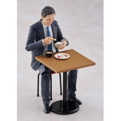 Cette figurine Figma met en scène Goro dans son rôle de voyageur gastronomique, vêtu de son costume sombre impeccable et de sa cravate bleue caractéristique. Sa posture droite, son expression concentrée ou surprise selon le visage choisi, et sa mallette en main restituent parfaitement son allure de salarié japonais ordinaire plongé dans un quotidien fait de petites découvertes culinaires.