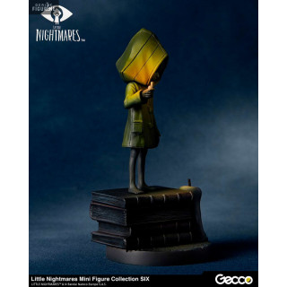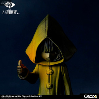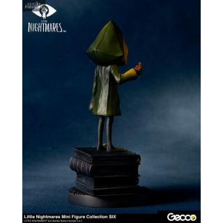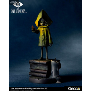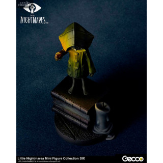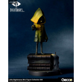 Six est une jeune fille de 9 ans, qui est pourtant très débrouillarde et courageuse. Elle va devoir parcourir les recoins les plus sombres de l'Antre, éprouvant parfois de grosses crises de faim. Elle est parfaitement représentée sur sa pile de livres, un briquet à la main, dans son ciré jaune.