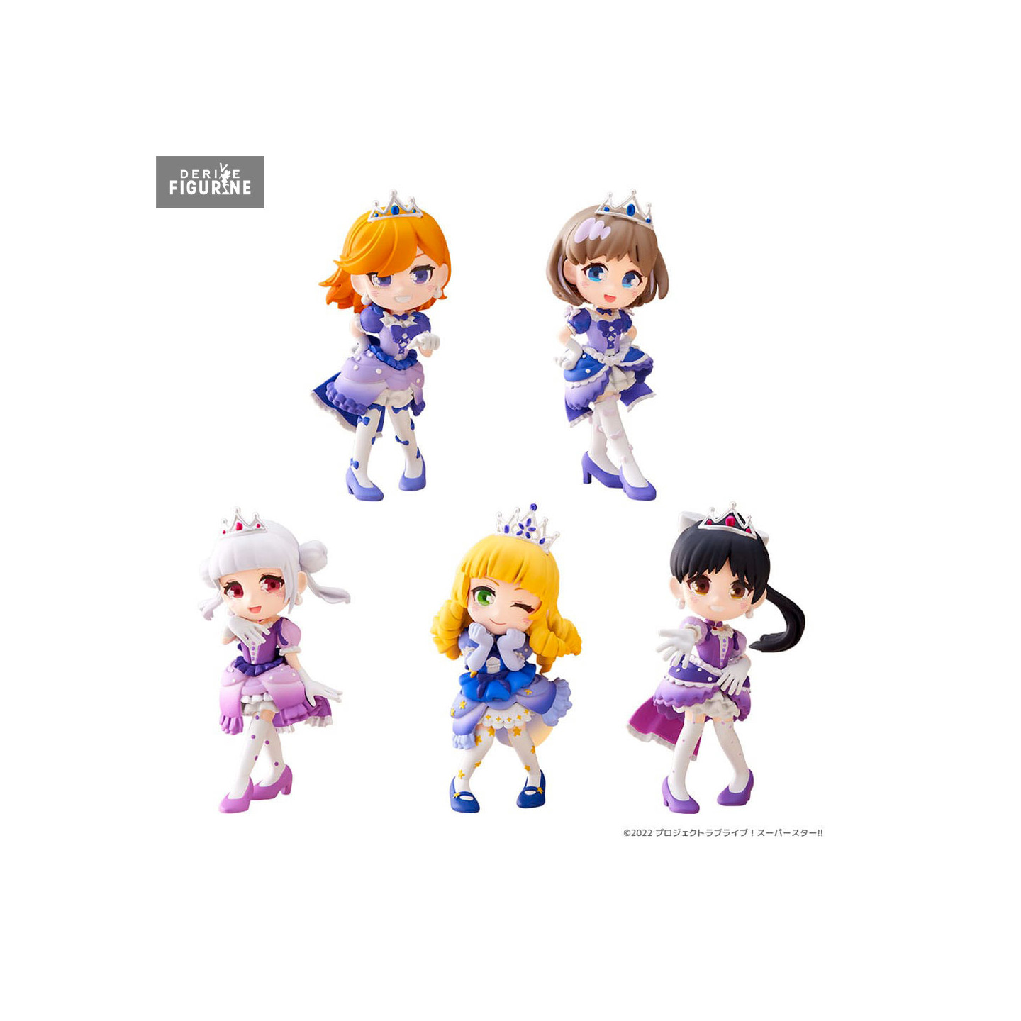 Si vous trouvez les personnages de Love Live ! Superstar trop mignons, vous ne pourrez pas résister très longtemps en voyant ces petites figurines. Elles sont vraiment adorables dans leur robe de scène, une couronne sur la tête. De plus, grâce à leur petite taille, vous pourrez facilement leur trouver un emplacement pour les exposer. Il ne reste plus qu'à voir laquelle des cinq vous aurez parmi Shibuya Kanon, Tang Keke, Arashi Chisato, Heanna Sumire ou Hazuki Ren.