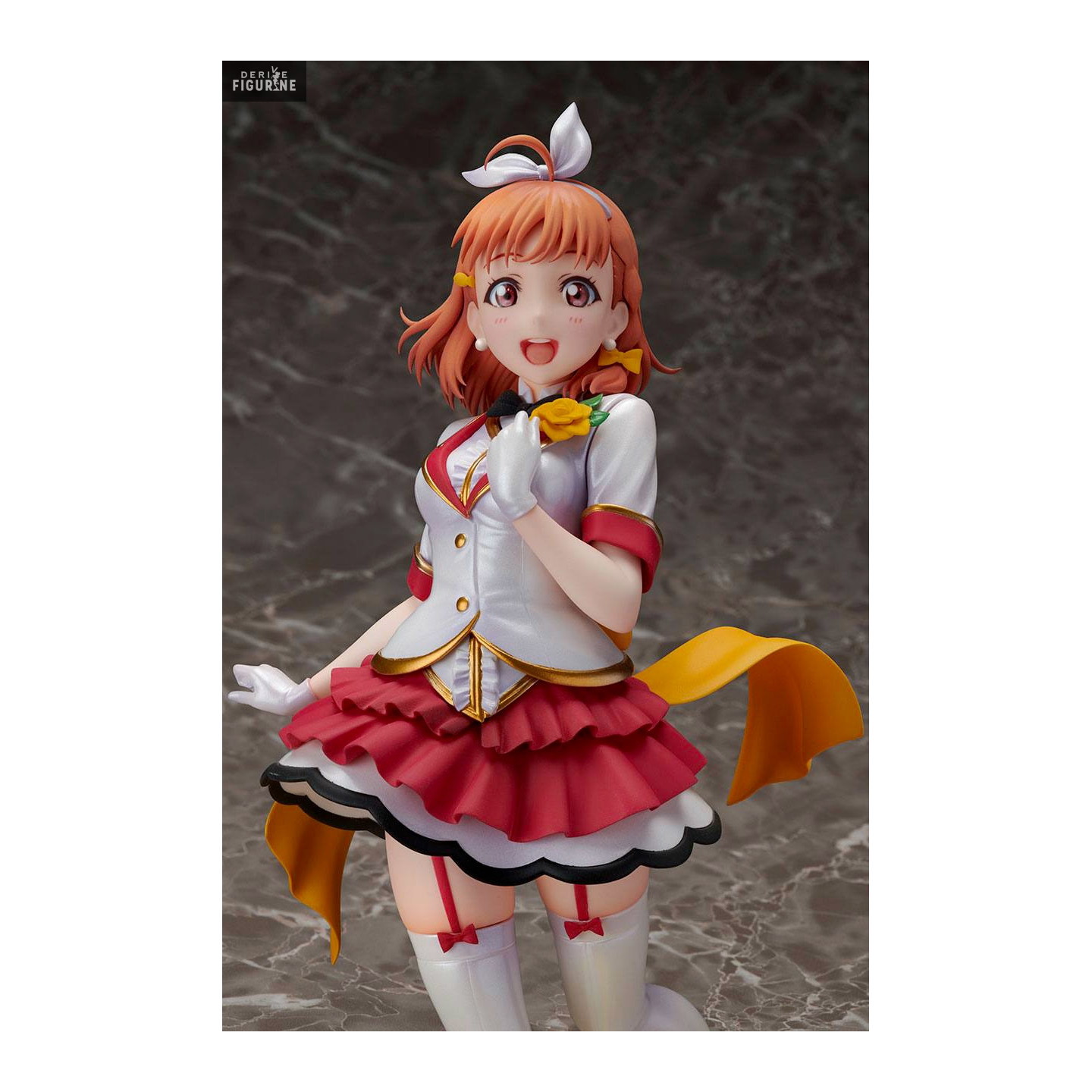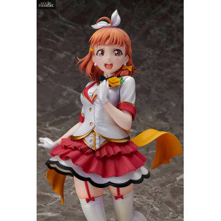 Chika Takami est l'héroïne de Love Live! Sunshine!! et aussi le leader du groupe Aqours. Comme vous pouvez le voir avec son grand sourire, c'est une personne gaie et enjouée. Elle porte une tenue rouge, blanche et jaune qui lui va très bien.