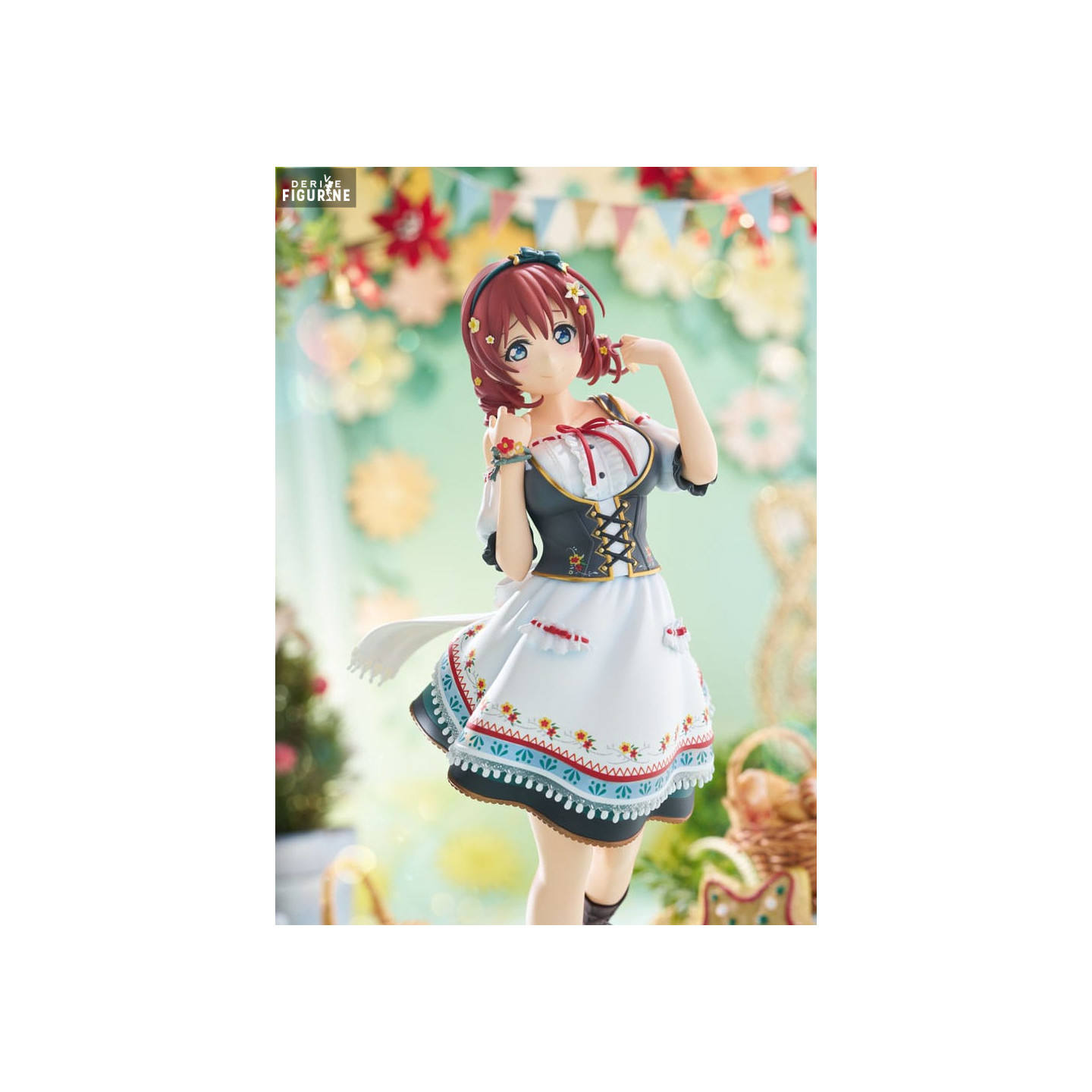 Cette figurine officielle d'Emma Verde, produite par Plum, la représente dans une tenue folklorique européenne, inspirée de ses racines suisses. Sa robe blanche ornée de motifs floraux, associée à des bottes marron et des accessoires détaillés, reflète son charme naturel et sa simplicité. Réalisée en PVC et mesurant environ 24 centimètres à l'échelle 1/7, cette figurine capture parfaitement l'élégance et la douceur d'Emma. Les finitions délicates et les couleurs vibrantes rendent cette pièce incontournable pour les fans de Love Live! Nijigasaki High School Idol Club.