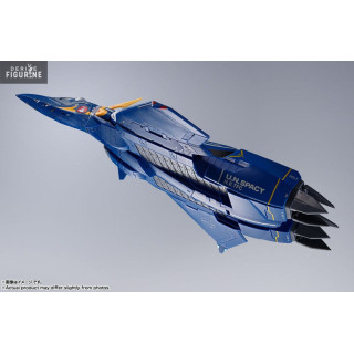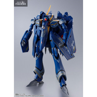 Figurine officielle de YF-21 (Guld Goa Bowman Use) en métal mesurant environ 28 centimètres de haut. Elle est issue de la collection DX Chogokin. Le fabricant est Bandai.