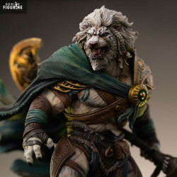 Figurine officielle de Ajani Goldmane en résine mesurant environ 26 x 19 x 13 centimètres, à l'échelle 1/10. Elle est issue de la collection Art Scale. Le fabricant est Iron Studios.