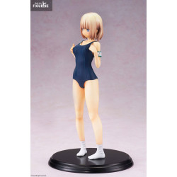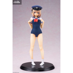 Elle porte un maillot une pièce de couleur bleu marine, orné d’un col marin blanc avec ruban rouge, ainsi qu’une casquette de chef de gare. Ses chaussettes blanches renforcent le côté scolaire de l’ensemble, et le socle noir met en valeur la silhouette sans détourner l’attention de la figurine elle-même. Chaque détail, de la coiffure à l’attitude corporelle, est fidèlement reproduit.