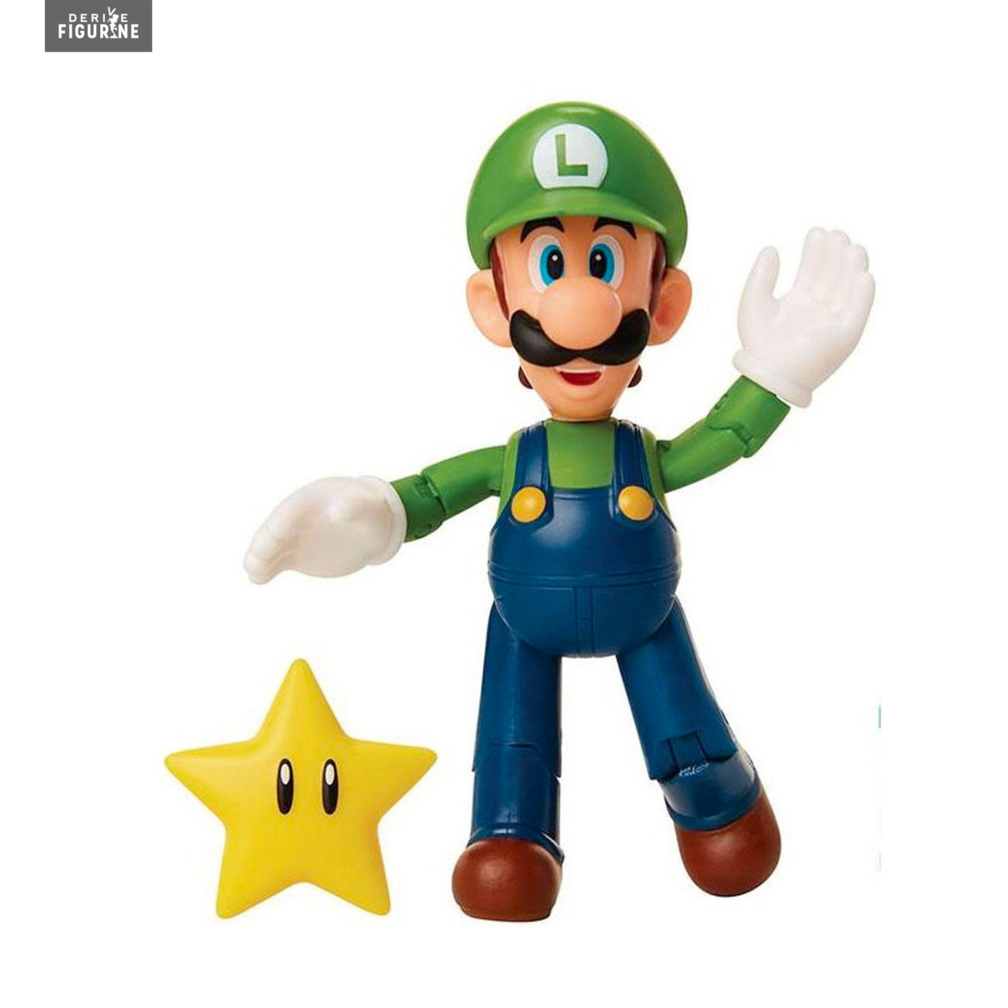 Figurine officielle de Luigi with Super Star mesurant environ 10 centimètres de haut. Le fabricant est Jakks Pacific.