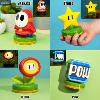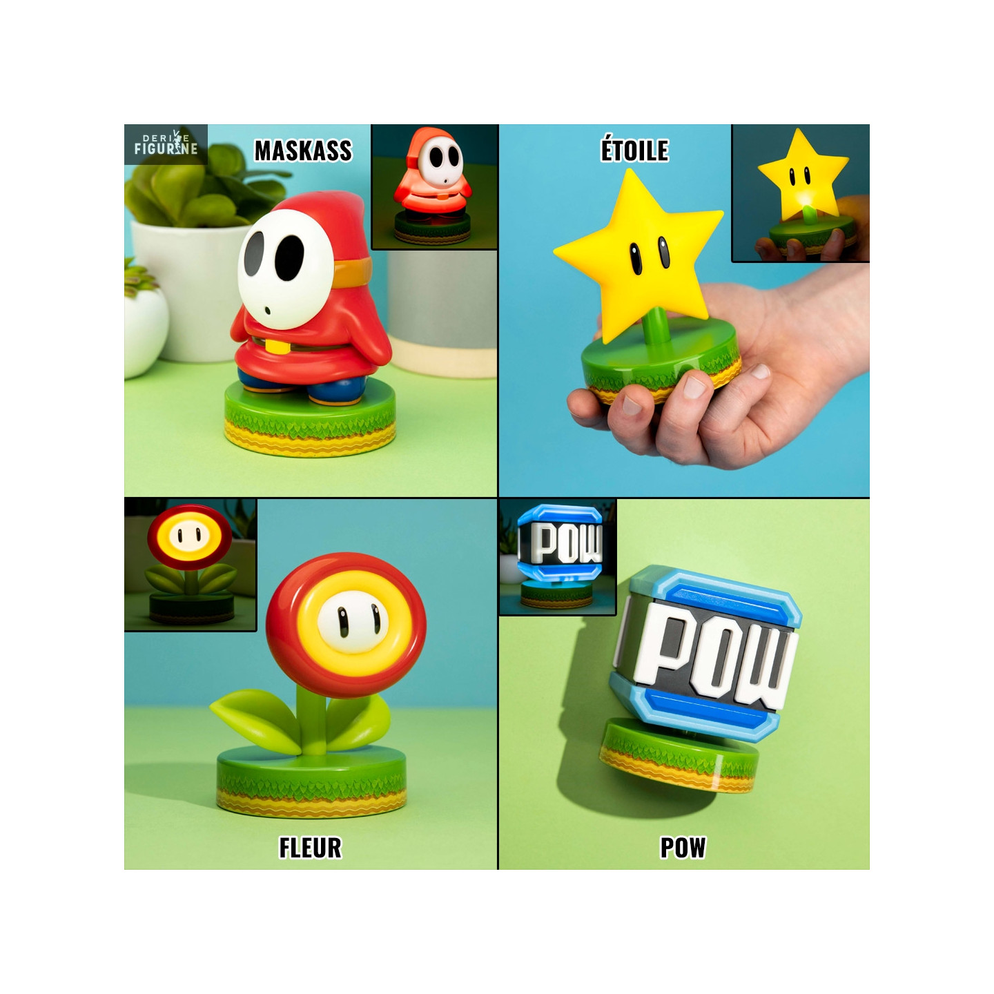 Si vous êtes l'un des grands fans des jeux Nintendo et plus particulièrement les Mario, vous allez adorer ces petites veilleuses. Il y a le choix entre Maskass, un ennemi typique de Mario, une Étoile qui vous rend invincible quelques secondes, une Fleur de feu qui vous fait lancer des boules de feu ou enfin le bloc POW qui retourne tout.
