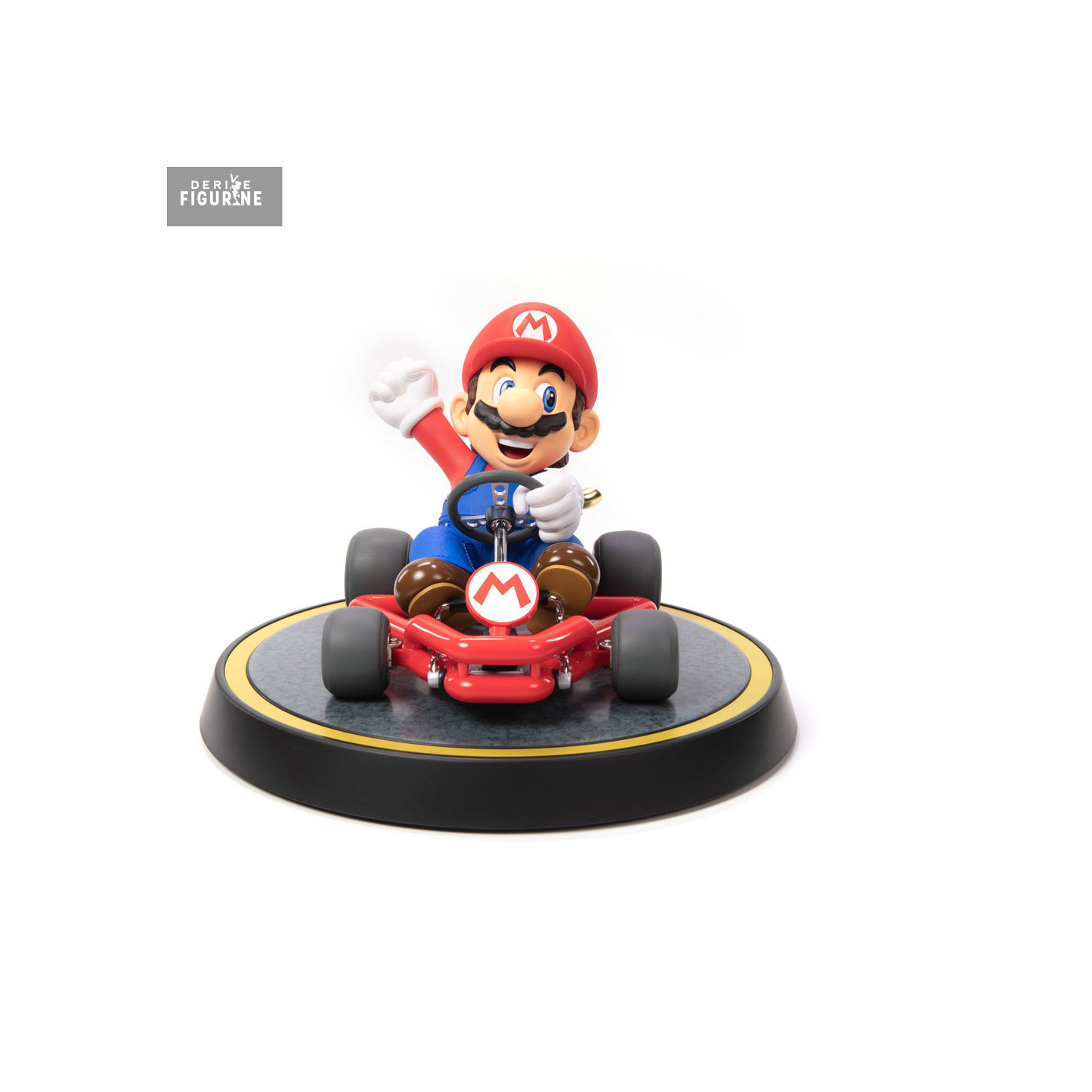 Éléments spéciaux : kart détaillé, socle circulaire décoratif, posture de conduite