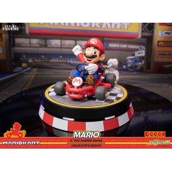 Figurine officielle de Mario, Collector's Edition en PVC mesurant environ 22 centimètres de haut. Le fabricant est First4Figures.