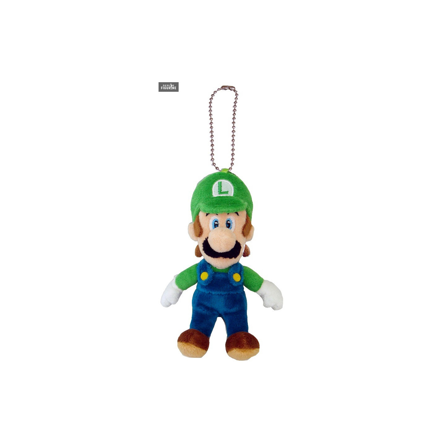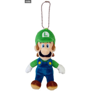 Porte-clés officiel de Luigi en peluche qui mesure environ 15 centimètres de haut. Le fabricant est Little Budy Toys.