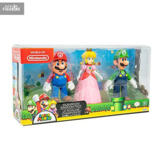 Figurines officielles du Royaume Champignon mesurant environ 10 centimètres de haut. Le fabricant est Jakks Pacific.