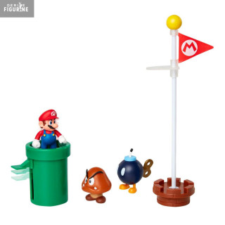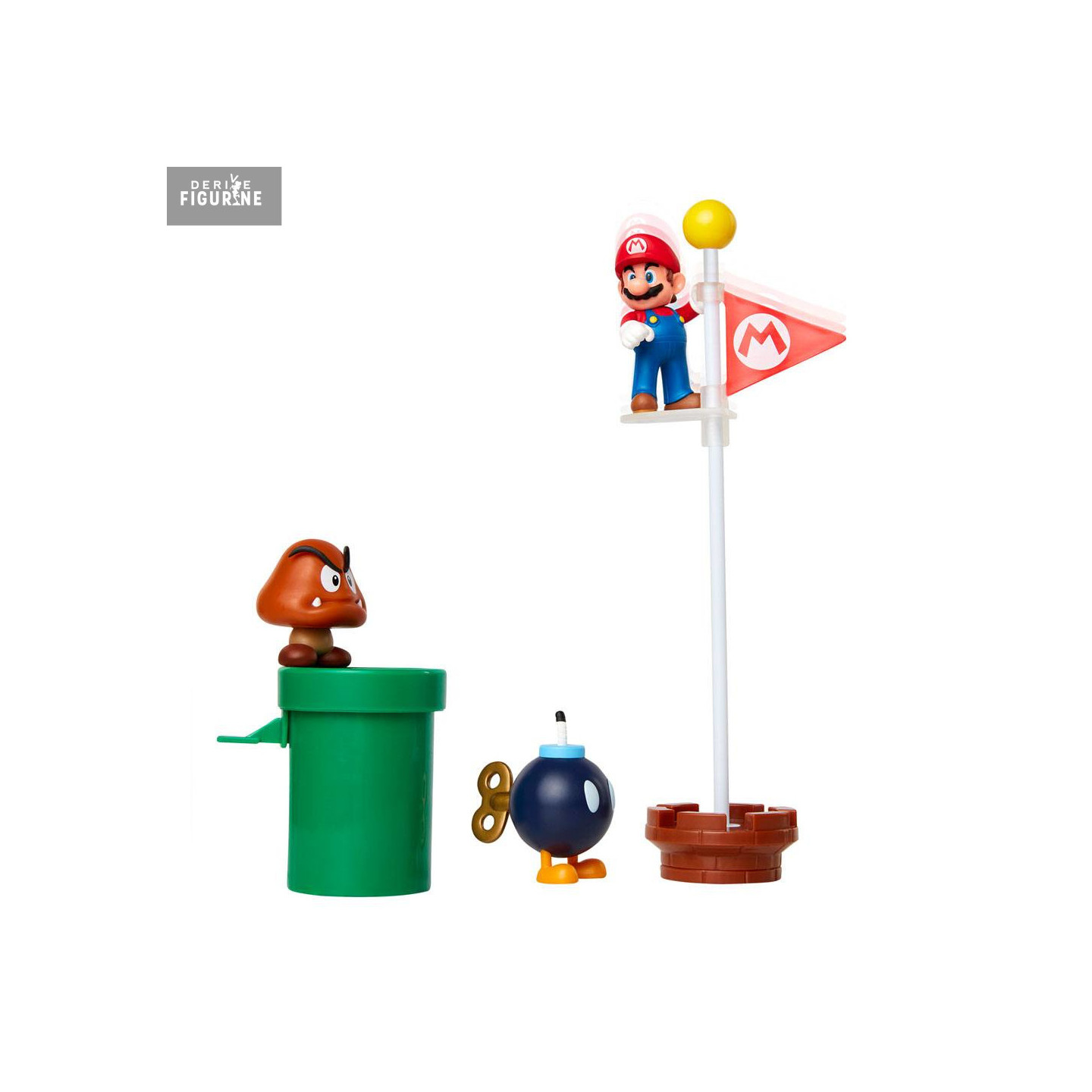 Cet ensemble de figurines, mesurant environ 6 centimètres de haut, est fabriqué par Jakks Pacific et met en avant des détails soignés pour un rendu fidèle au style de Super Mario. Que ce soit la texture du drapeau arborant l’emblème de Mario, l’expression faciale du Goomba ou la petite clé dorée du Bob-omb, chaque élément rappelle fidèlement l’esthétique du jeu. Un must-have pour les collectionneurs et les fans du Royaume Champignon.
