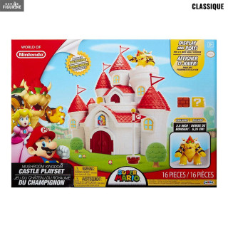 Figurines officielles du Château du royaume champignon mesurant environ 30 x 27 x 13 centimètres. Le fabricant est Jakks Pacific.