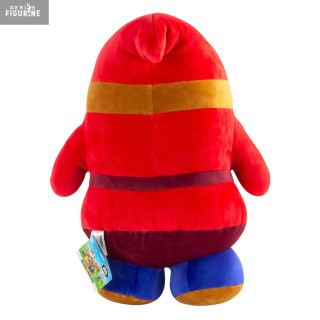 Mesurant environ 41 x 36 cm, cette peluche 100 % polyester est un concentré de moelleux. Son rouge éclatant, sa ceinture dorée et ses grosses chaussures bleues fidèles au design d’origine en font un objet aussi décoratif qu’irrésistible à câliner. On ne sait toujours pas ce qui se cache derrière ce masque, mais une chose est sûre : cette version-là ne fait pas peur — elle réconforte.