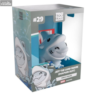 Figurine officielle de Jeff the Land Shark Dolphin Suit en vinyle mesurant environ 8 centimètres de haut. Le fabricant est Youtooz.