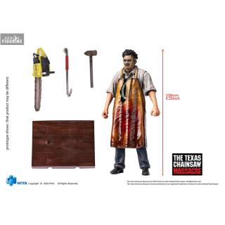 La figurine inclut plusieurs accessoires iconiques, tels que la tronçonneuse redoutable de Leatherface, un crochet et un marteau, offrant ainsi des possibilités d'affichage variées pour recréer des scènes emblématiques du film. La base en bois ajoute une touche finale à l'ensemble, permettant de présenter Leatherface dans un décor approprié à son personnage.