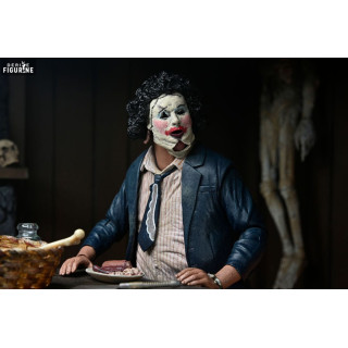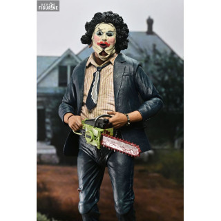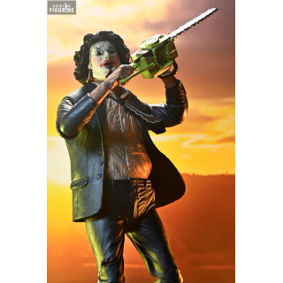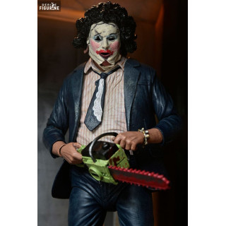 Représentant Leatherface dans sa tenue Pretty Woman, cette version capture les détails glaçants du personnage, notamment son costume sombre, son masque grotesque et son allure inquiétante. La figurine mesure 20 centimètres de haut et fait partie de la célèbre collection Ultimate de NECA, connue pour sa qualité exceptionnelle et ses accessoires variés.