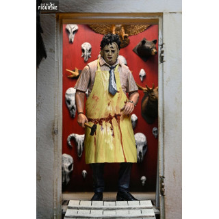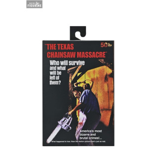 Figurine officielle de Clothed Leatherface, 50th Anniversary mesurant environ 20 centimètres de haut. Elle est issue de la collection Ultimate. Le fabricant est NECA.