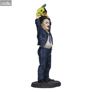 Directement inspirée de la scène finale du film original de 1974, cette figurine capte ce moment de pure folie, quand Leatherface se met à tournoyer sous le soleil texan, frustré, furieux, incompris — un vrai cri silencieux de l’horreur américaine. Son masque cousu, son maquillage grotesque, sa tronçonneuse jaune levée au ciel : tout y est.