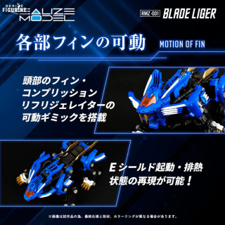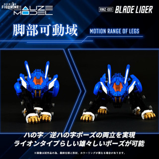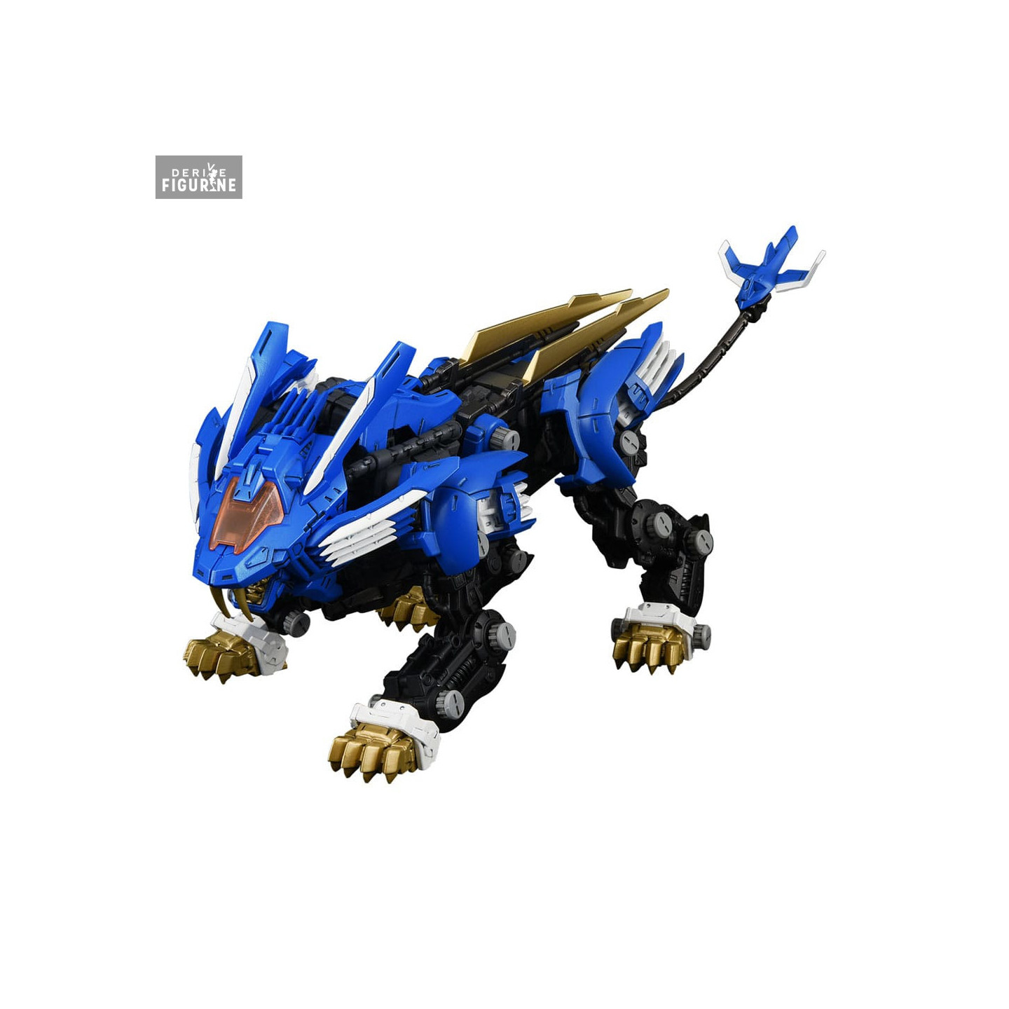 Blade Liger est l'un des Zoids les plus emblématiques de la franchise, connu pour sa vitesse, sa puissance et son élégance. Le modèle reproduit fidèlement ces caractéristiques avec une attention particulière aux détails, des griffes dorées imposantes aux lames acérées sur son dos. Le bleu vif du Blade Liger est accentué par des touches de blanc et de doré, soulignant son allure majestueuse et sa capacité à dominer sur le champ de bataille.