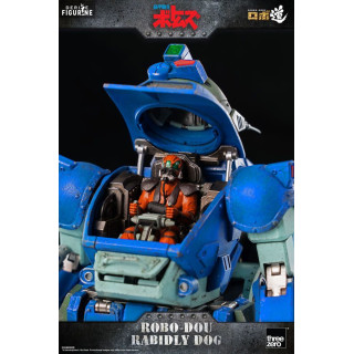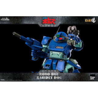Figurine officielle de Robo-Dou Rabidly Dog mesurant environ 16 centimètres de haut. Le fabricant est ThreeZero.