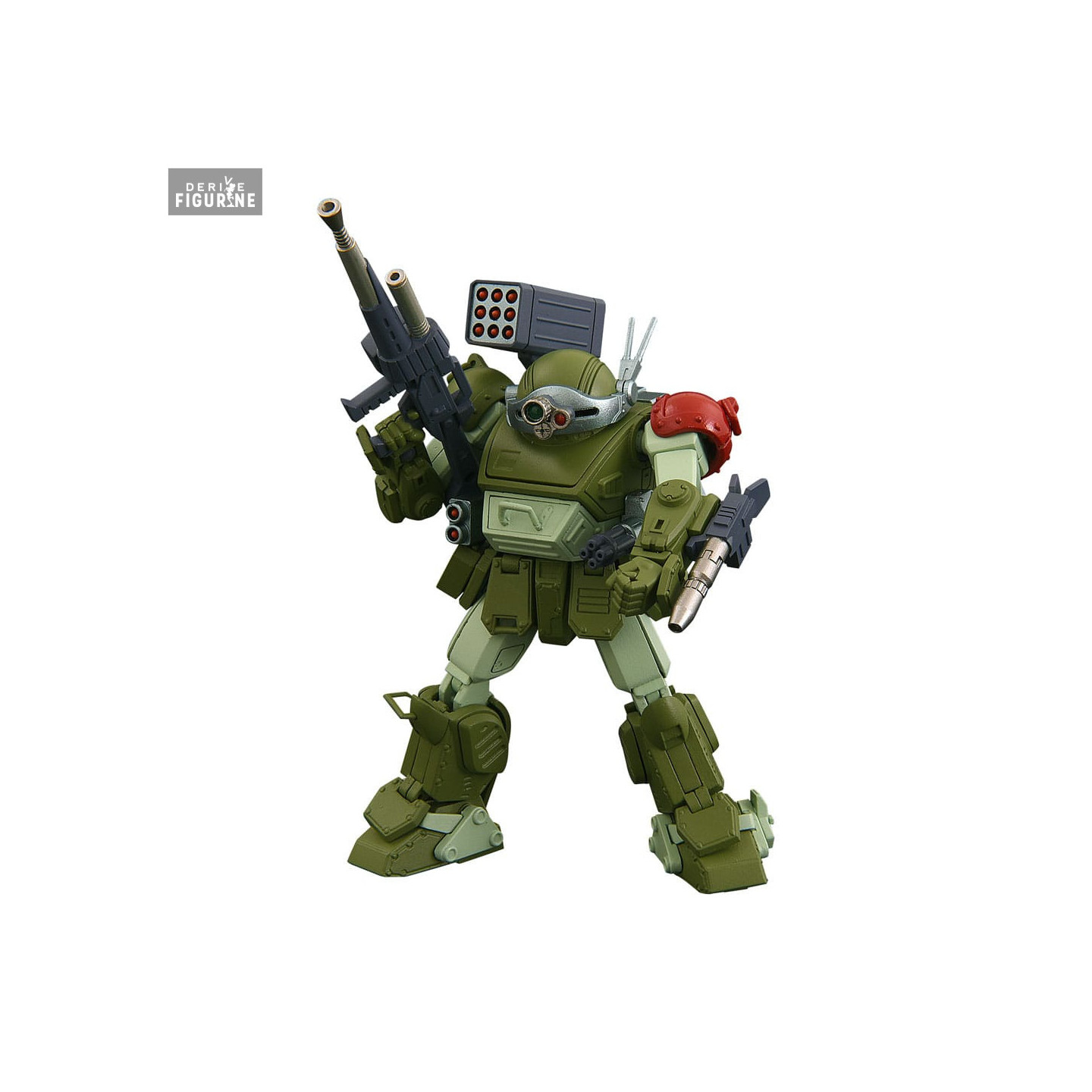 Le Scopedog Red Shoulder Custom est l’un des modèles emblématiques de l’univers Armored Trooper VOTOMS, un classique de la science-fiction mecha. Piloté par Chirico Cuvie, ce robot d’assaut se distingue par son bras rouge caractéristique, signe d’appartenance à l’élite impitoyable des Red Shoulders. Le Scopedog est conçu pour des missions militaires variées, avec une armure robuste et une grande modularité qui lui permet d’être équipé d’un arsenal varié. Ce modèle spécifique, le Red Shoulder Custom, incarne parfaitement l’intensité des batailles et le réalisme sombre de l’univers de VOTOMS.
