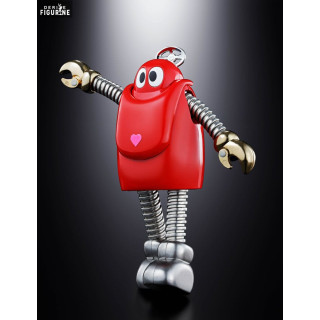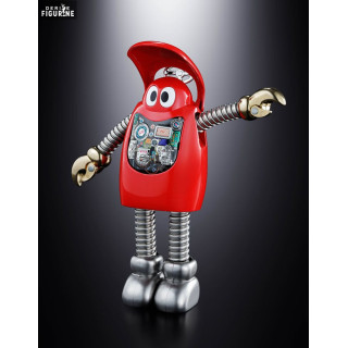 Cette figurine, issue de la prestigieuse collection Chogokin de Bandai, est un hommage exceptionnel à ce personnage iconique. Fabriquée en métal et mesurant 12 centimètres, elle capture fidèlement le design rond et coloré de Robocon, avec des détails tels que ses bras articulés en ressort et sa petite manivelle emblématique sur la tête. Robocon arbore également un cœur rose sur sa poitrine, symbole de son rôle bienveillant. Grâce à l'utilisation de matériaux haut de gamme, cette pièce incarne à la fois robustesse et charme rétro, offrant un véritable trésor pour les fans et les collectionneurs.