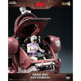Figurine officielle de Robo-Dou Brutishdog mesurant environ 15 centimètres de haut. Le fabricant est ThreeZero.