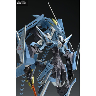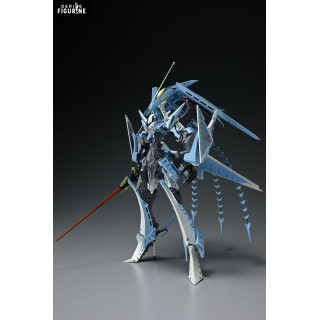 Le Gatexion Mark3 Dharmas se distingue par ses lignes acérées, presque organiques, et sa prestance martiale. L’équilibre entre les tons bleutés froids et le noyau central plus sombre donne à l’ensemble une aura austère, presque divine. L’épée longue qu’il tient ajoute encore à cette impression de puissance calculée, comme une extension naturelle de sa volonté tactique.