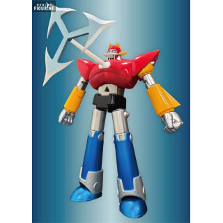 Cette figurine issue de la gamme Neo Dynamite Action restitue fidèlement son design d’origine : buste rouge à liseré jaune, épaules triangulaires, visage métallique protégé par une grille et yeux jaunes anguleux. Les avant-bras jaunes et les jambes bleues métalliques complètent la silhouette emblématique, tandis que les articulations dissimulées offrent un rendu épuré et proche du dessin animé.