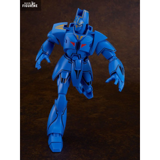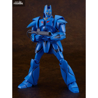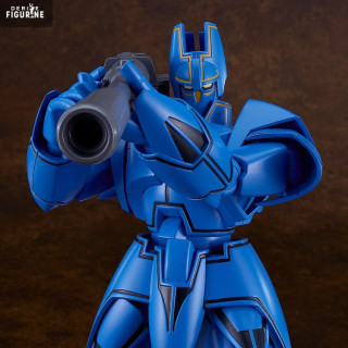 Reprenant fidèlement le design original, cette figurine met en avant une armure bleu électrique agrémentée de détails géométriques : épaulières élargies, plastron renforcé et casque à visière fendue. Les découpes précises de chaque panneau soulignent les articulations, tandis que les lignes de peinture rouge et or rappellent un cockpit fictif logé sous la poitrine.
