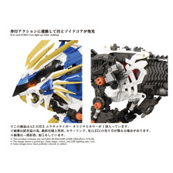 Au cœur de Zoids Genesis, Murasame Liger est le Zoid du protagoniste et excelle dans les assauts rapides au corps à corps grâce à ses lames et sa mobilité. C’est une machine conçue pour foncer, tailler l’ennemi et repartir avant la contre-attaque, tout en restant le symbole du courage de son pilote. La posture de cette version met justement en avant ce côté prédateur, avec le corps bas et prêt à bondir, comme si le Liger s’apprêtait à déclencher une charge à pleine puissance.