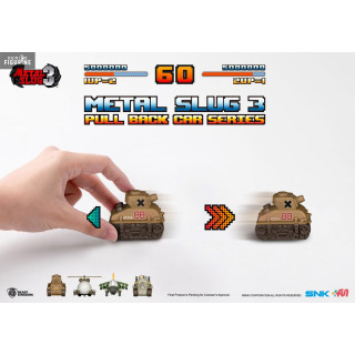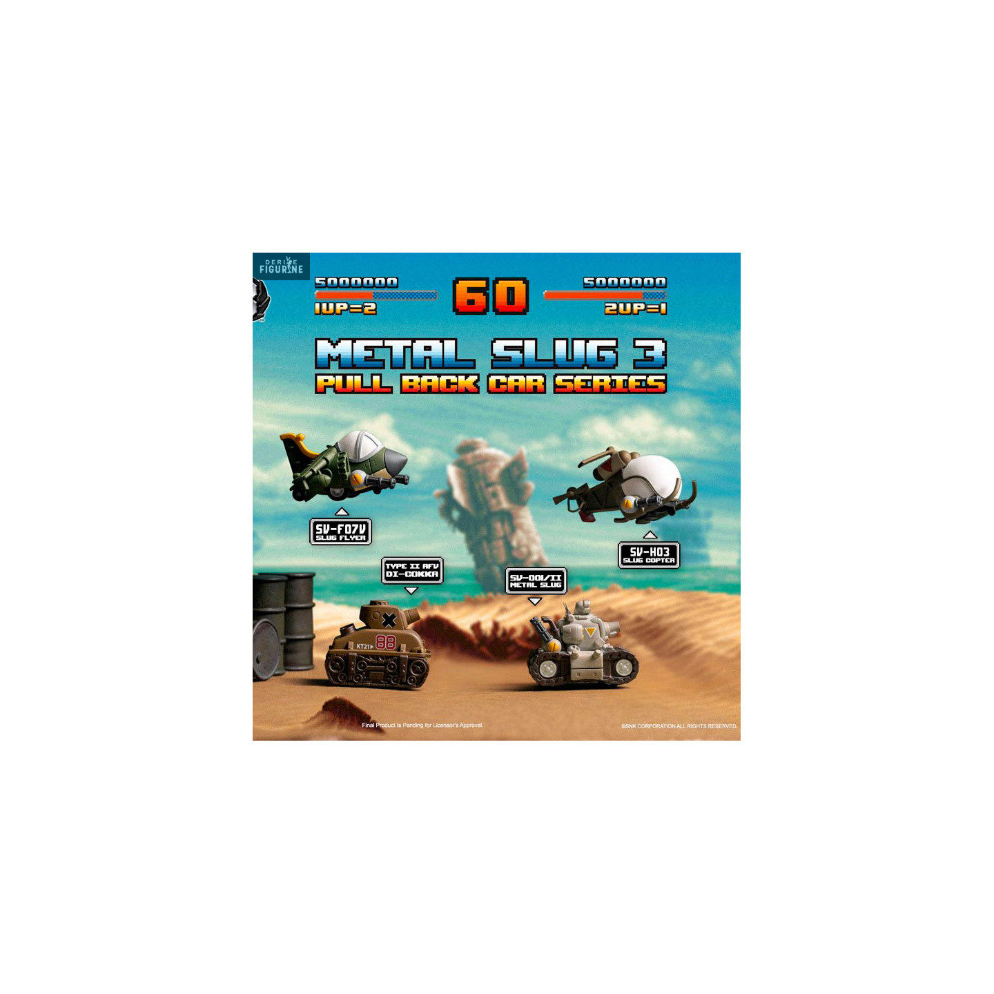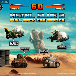 Metal Slug 3 s'offre ce pack de quatre véhicules à friction de cet opus pour la collection Pull Back Car Series. Le pack contient les figurines suivantes : SV-001, SV-F07V Slug Flyer, SV-H03 Slug Copter et Type II AFV Di-Cokka.