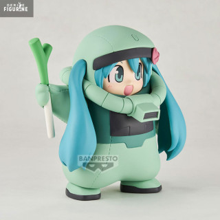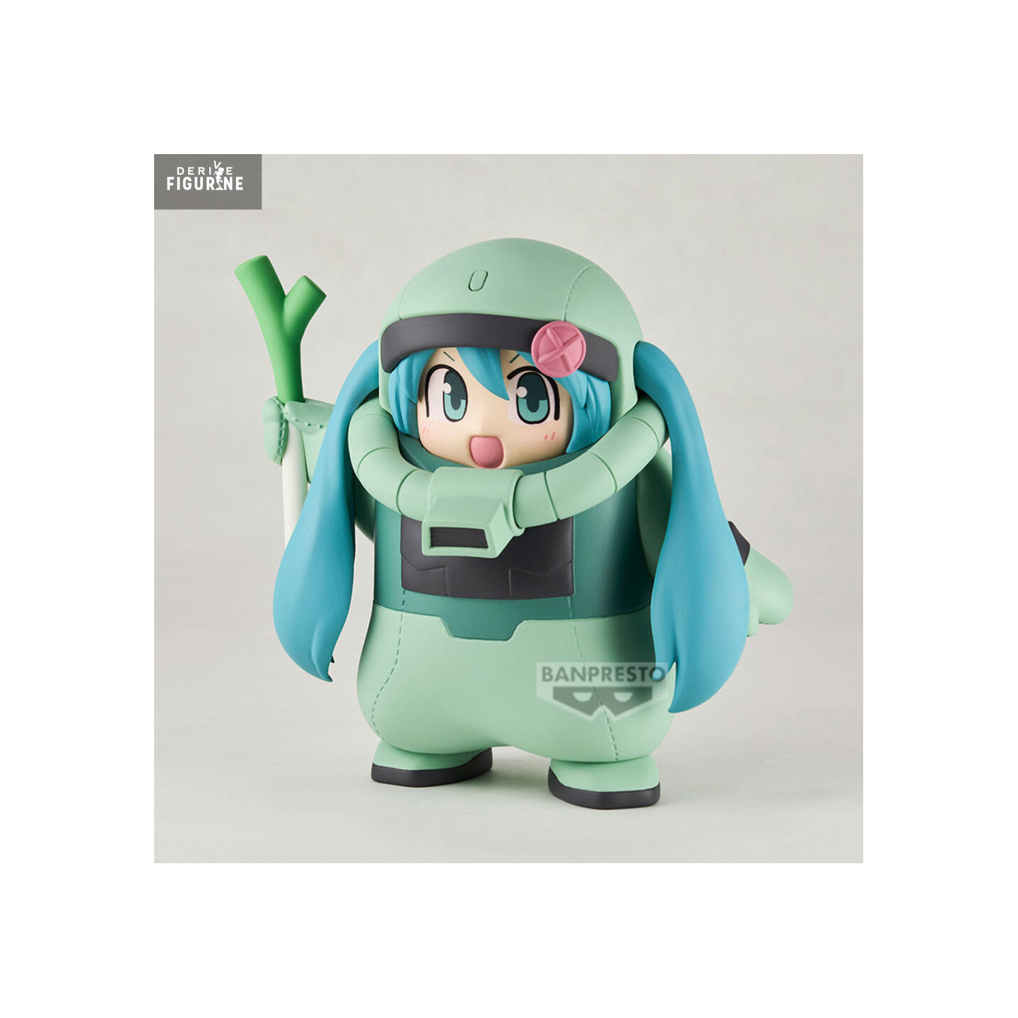Hatsune Miku, c’est bien plus qu’une idole virtuelle. C’est un phénomène culturel mondial, qui fusionne musique, technologie, et fandom comme peu d’autres personnages. Et ici, on joue à fond la carte du crossover : le design rappelle les Zaku de Gundam, avec la visière noire, les lignes mécaniques simplifiées et la couleur verte reconnaissable. Le tout est traité de manière ultra mignonne, avec ce look rond, compact et joyeusement absurde.
