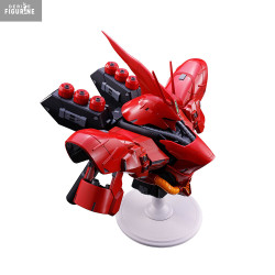 Cette version de Sazabi est présentée sous forme de buste stylisé, concentrant toute la puissance visuelle de l’unité dans un format compact. La figurine met en valeur les détails mécaniques de l’armure frontale, les épaulières massives et les ailettes déployées de chaque côté. L’effet de volume et les angles nets soulignent la dimension imposante du mecha, même réduit à sa partie supérieure.