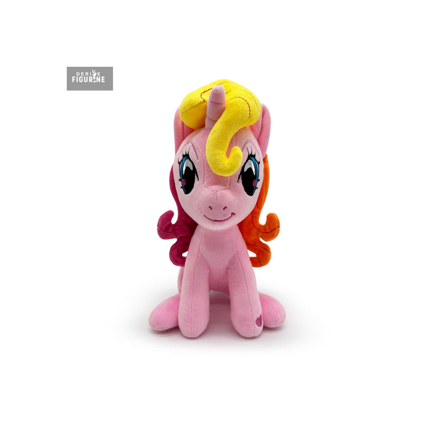 Cette peluche Classic reproduit fidèlement son allure : corps rose tendre en velours doux, grande mèche avant jaune, crinière orange bouclée et longue queue dégradée vert-bleu. Son regard brodé, ses oreilles dressées et sa posture assise invitent à la câliner ou à l’exposer dans ta collection.