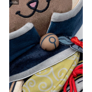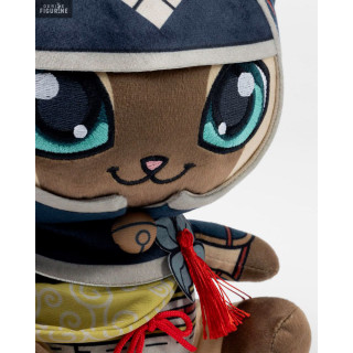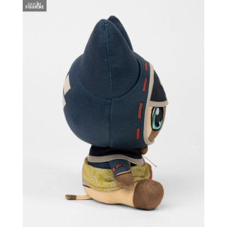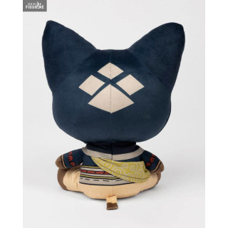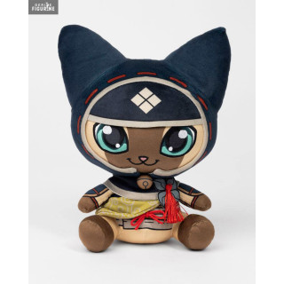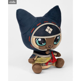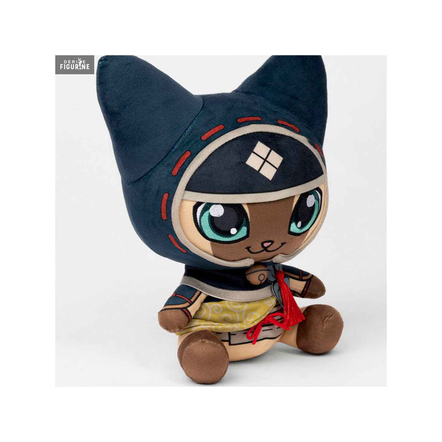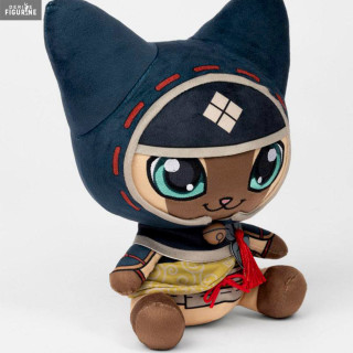Peluche officielle de Kamura Palico mesurant environ 28 centimètres. Le fabricant est ItemLab.