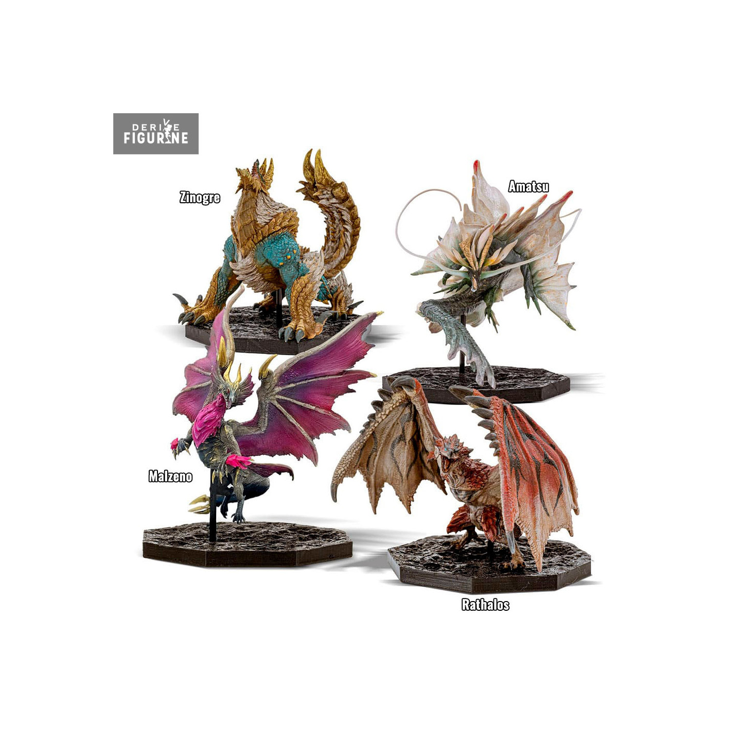Figurine officielle au choix du Amatsu (13 cm), Malzeno (13 cm) ou Zinogre (10 cm) ou pack (contenant Rathalos (14 cm)) en PVC. Elle est issue de la collection CFB Creators Model. Le fabricant est Capcom.