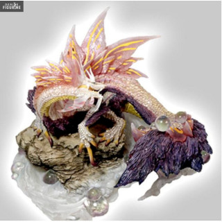 Voici une figurine d'un Mizutsune. Ce léviathan est vu pour la première fois dans Monster Hunter Generations. Le dessous de son corps et sa queue sont couverts de fourrure violette et il a la capacité de créer des bulles et de les envoyer sur ses ennemis.