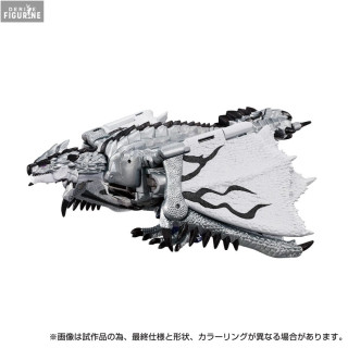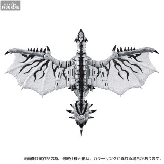Figurine officielle de Silver Rathalos Prime en PVC mesurant environ 13 centimètres de haut. Le fabricant est Takara Tomy.