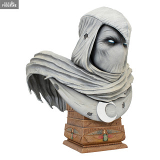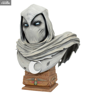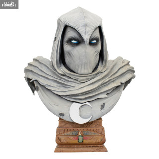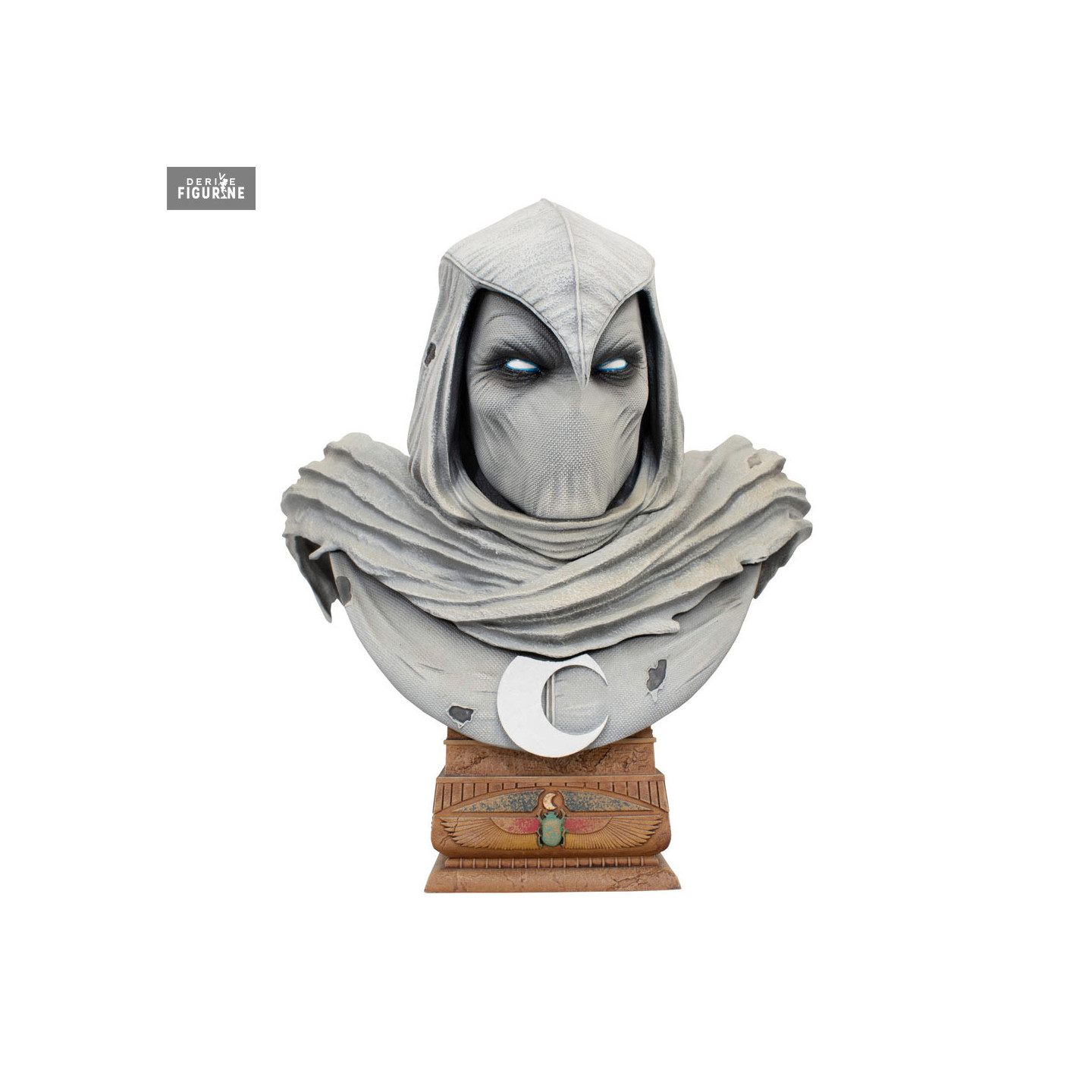 Buste officiel de Moon Knight en résine mesurant environ 25 centimètres de haut, à l'échelle 1/2. Il est issu de la collection Legends in 3D. Le fabricant est Diamond Select Toys.