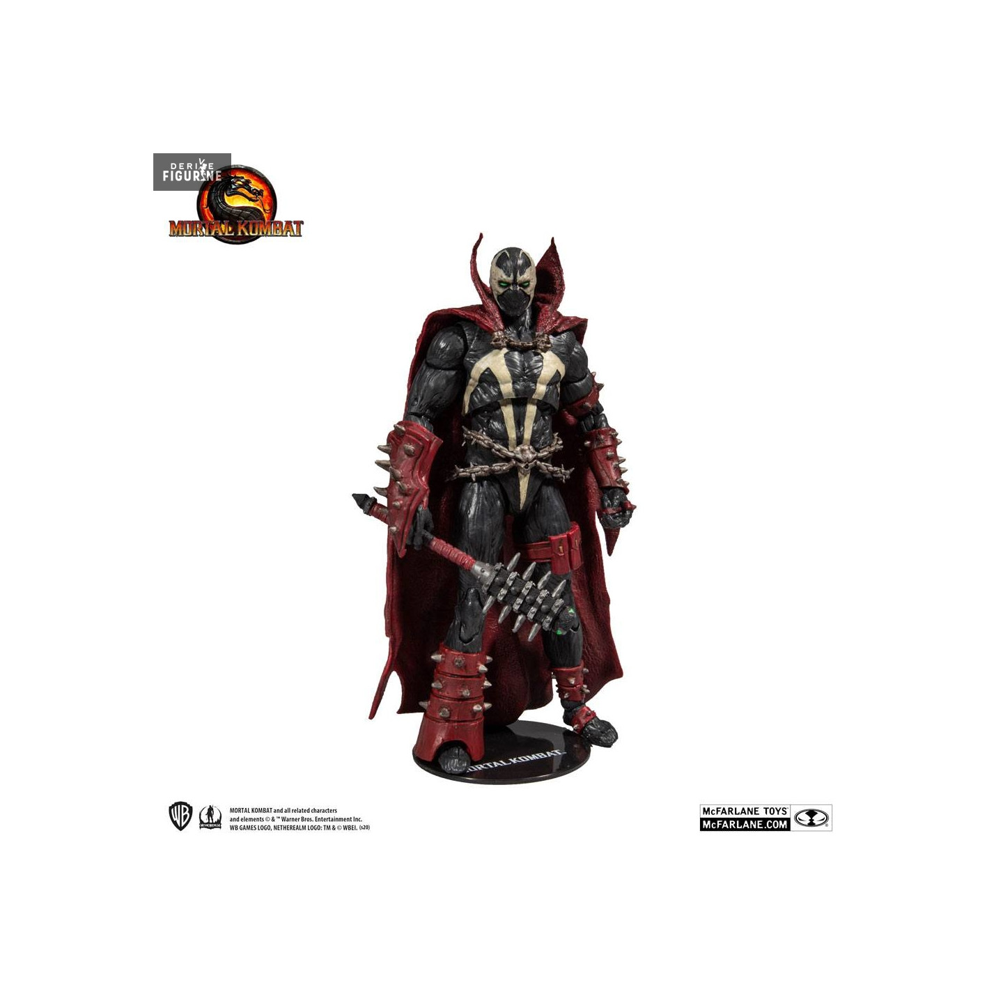 Figurine officielle de Spawn mesurant environ 18 centimètres de haut. Le fabricant est McFarlane Toys.