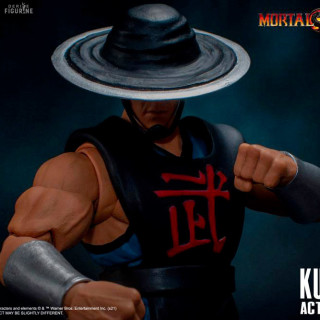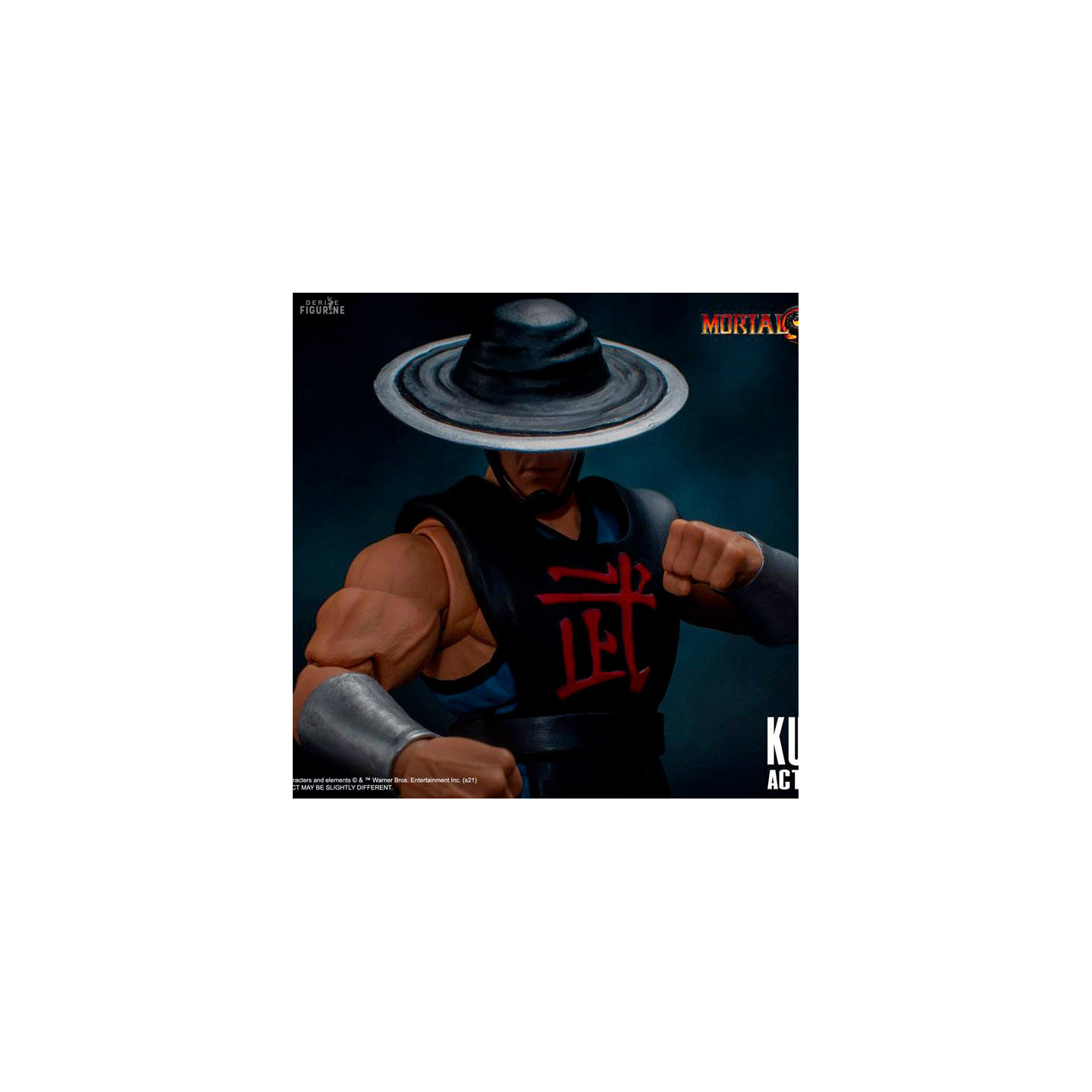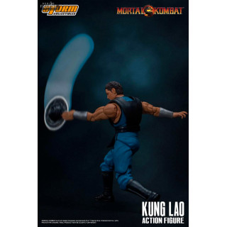 Figurine officielle de Kung Lao mesurant environ 18 centimètres de haut, à l'échelle 1/12. Le fabricant est Storm Collectibles.