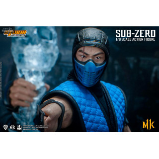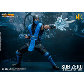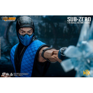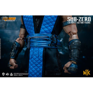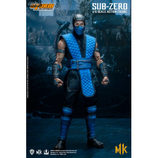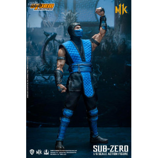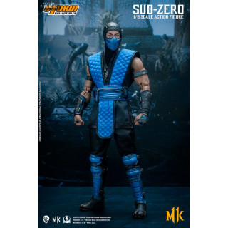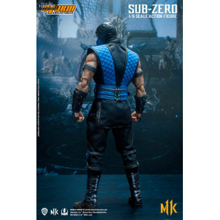 Figurine officielle de Sub-Zero mesurant environ 32 centimètres de haut, à l'échelle 1/6. Le fabricant est Storm Collectibles.