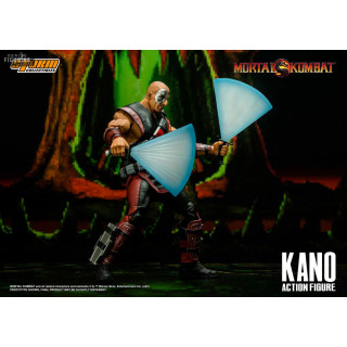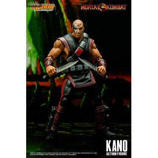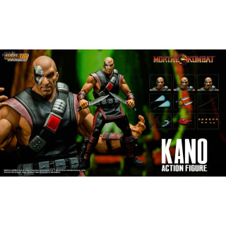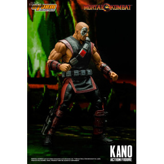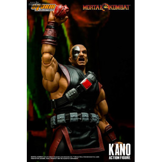 Kano est le premier membre du Dragon Noir à faire son apparition dans les jeux Mortal Kombat et pas des moindre puisque c'est le chef. Ce qui est parfait, c'est qu'en plus de ses nombreuses articulations, il possède aussi plusieurs accessoires et parties interchangeables pour l'exposer en plein combat. Vous pouvez voir que cette version est un peu comme un cyborg car il a un œil et un cœur cybernétique.