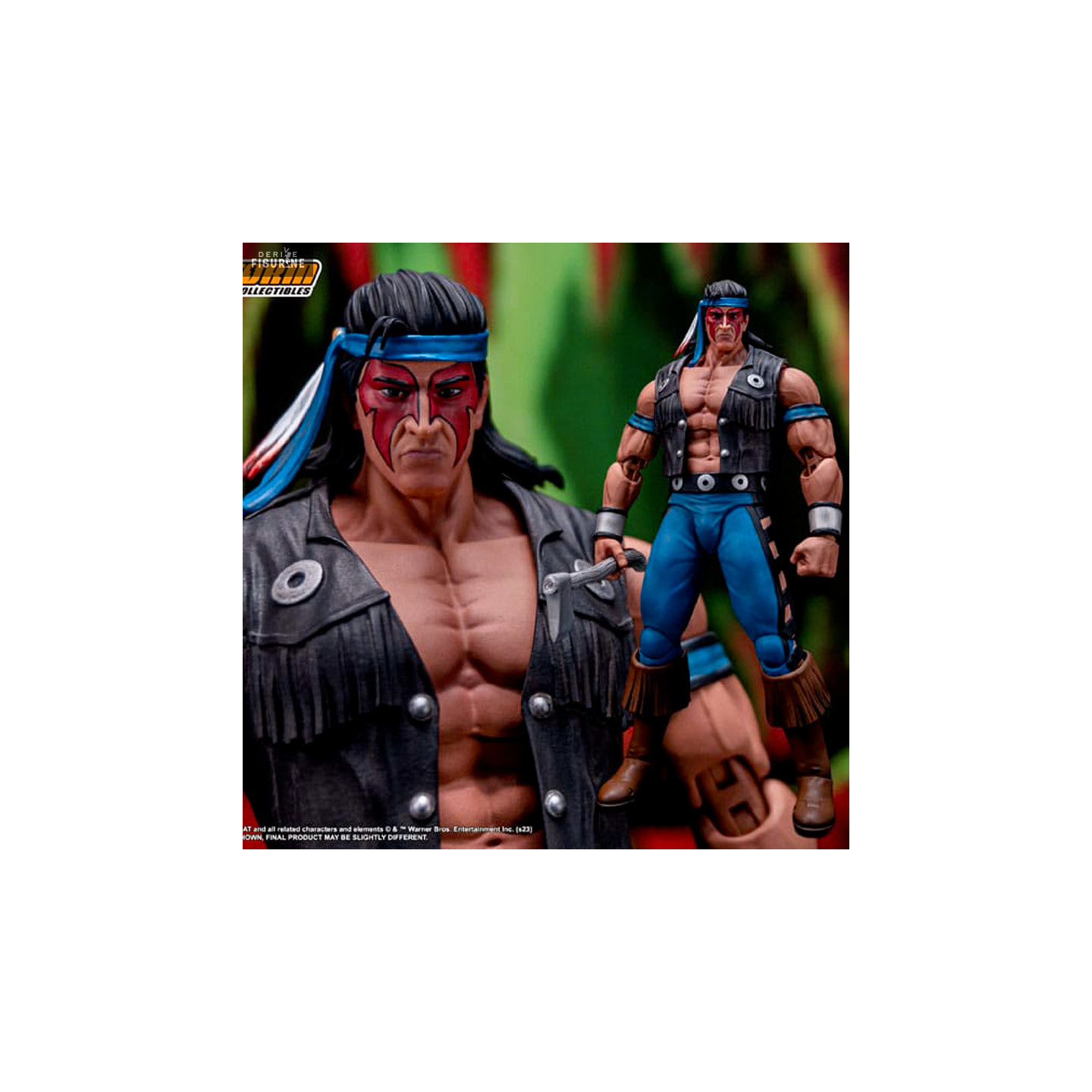 Dans Mortal Kombat, le combattant qui incarne le grand esprit de Nightwolf est désigné à chaque génération et cette figurine représente donc ce guerrier ! Il est le champion qui protège Matoka et il peut faire appel à la magie du grand esprit.