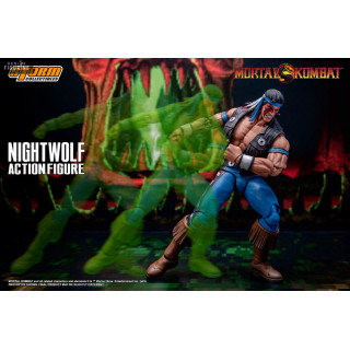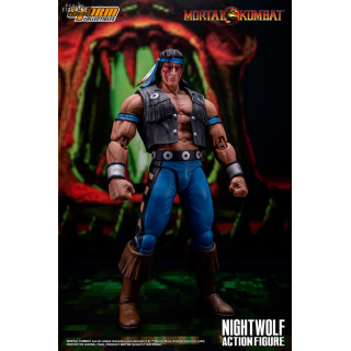 Figurine officielle de Nightwolf mesurant environ 18 centimètres de haut, à l'échelle 1/12. Le fabricant est Storm Collectibles.