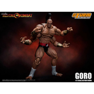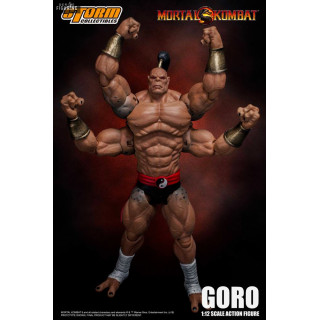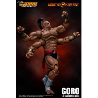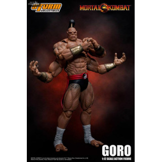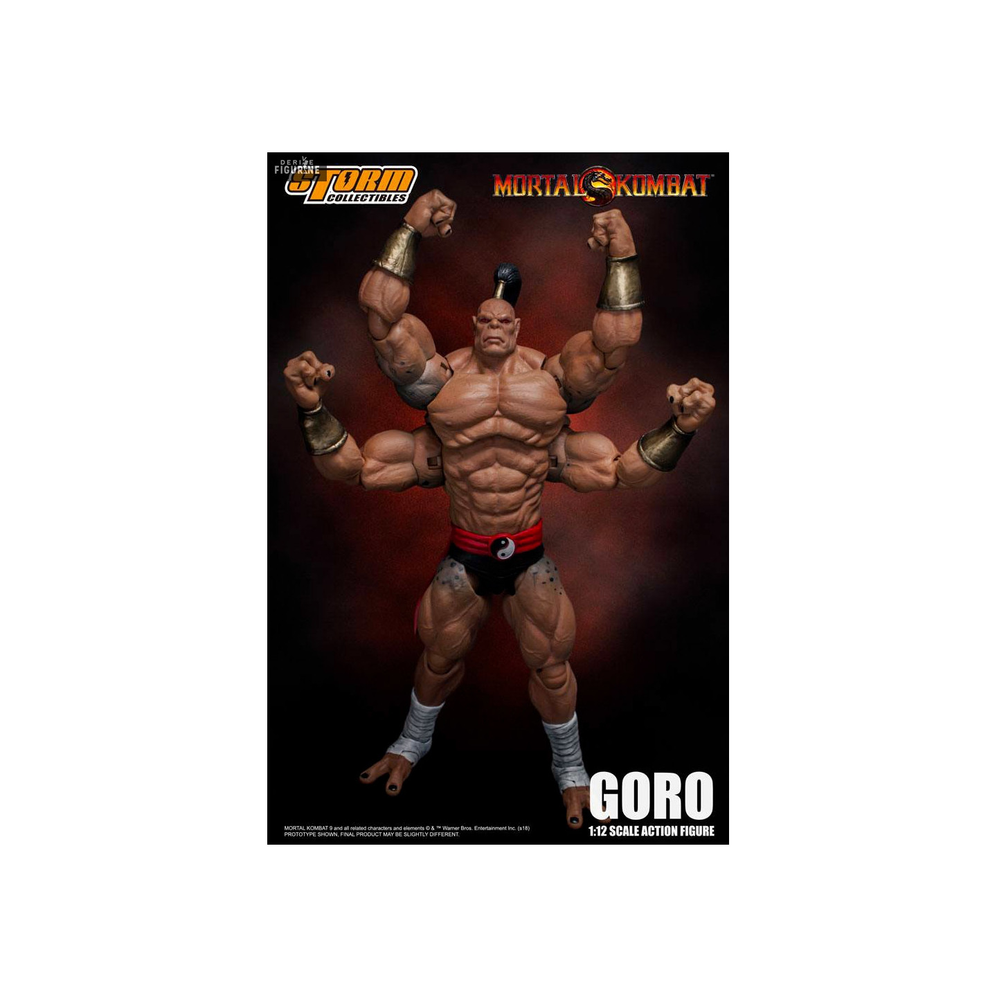 Goro est un personnage assez important de l'univers Mortal Kombat. Il a un carrure pour le moins imposante, mais c'est sans doute dû au fait qu'il est mi-humain, mi-dragon. Il est articulé et vendu avec des pièces interchangeables (têtes et mains) ainsi que des accessoires.