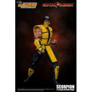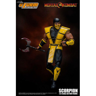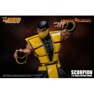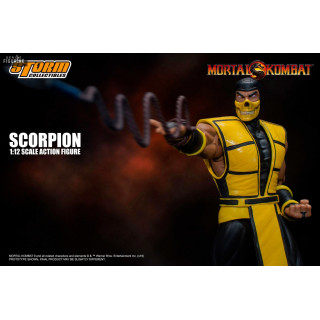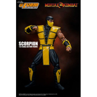 Figurine officielle de Scorpion mesurant environ 16 centimètres de haut, à l'échelle 1/12. Le fabricant est Storm Collectibles.
