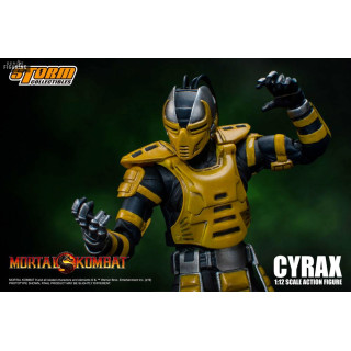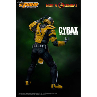 Figurine officielle de Cyrax mesurant environ 18 centimètres de haut, à l'échelle 1/12. Le fabricant est Storm Collectibles.