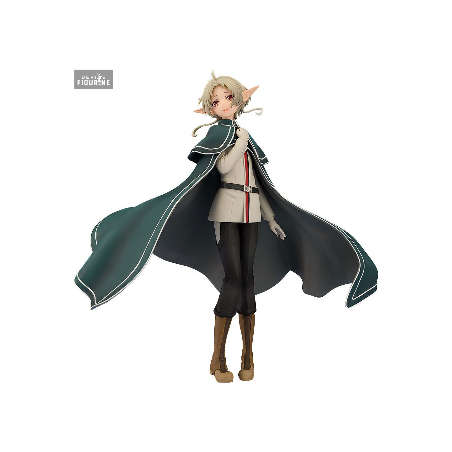 Cette figurine à l’échelle 1/7 la représente debout, dans une posture réservée et élégante. Elle porte une tenue composée d’un manteau long vert foncé doublé, aux liserés blancs, qui flotte derrière elle avec une belle amplitude. Ses bottes hautes, son uniforme sobre et ses cheveux clairs encadrant un visage délicat — orné d’un doux sourire — évoquent à merveille son apparence dans l’anime. L’option alternative avec des lunettes de soleil, vue sur l’une des images, ajoute une touche humoristique fidèle à sa fausse identité.